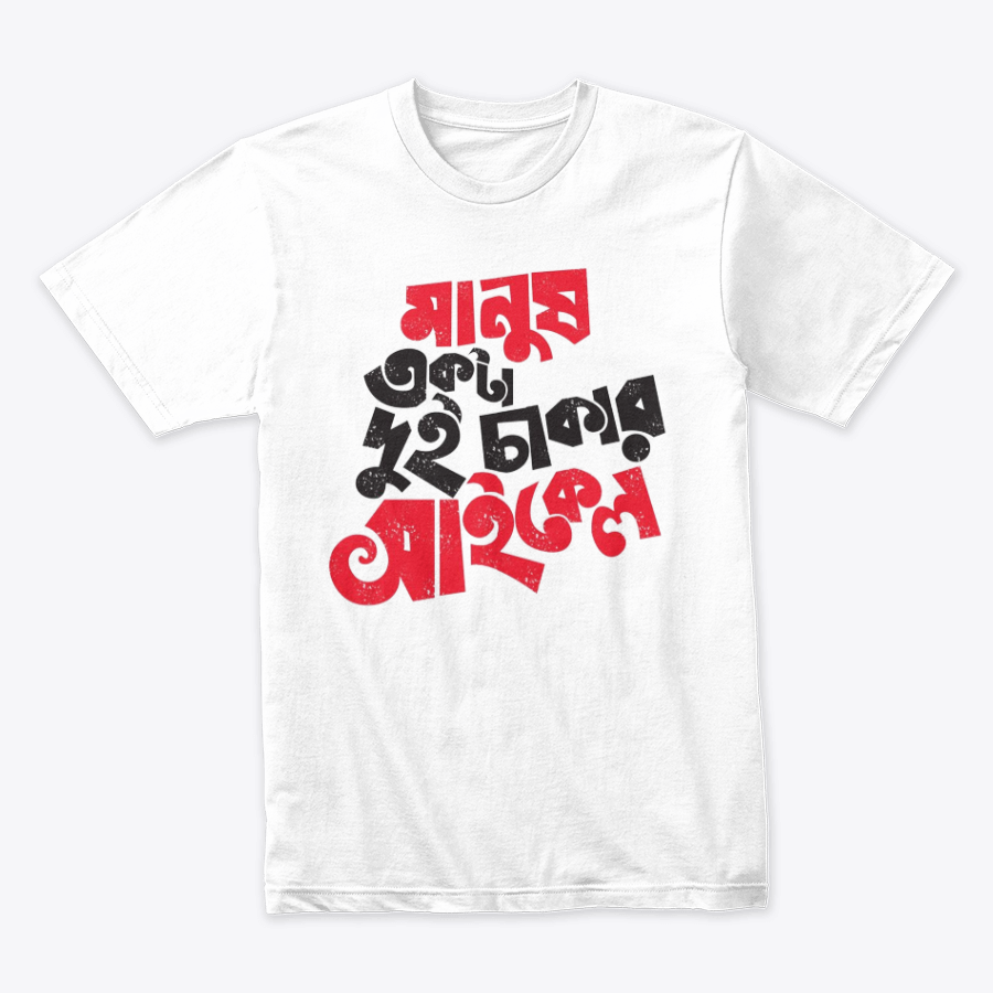 MANUSH AKTI DU CHAKAR CYCLE BENGALI TYPOGRAPHY T-SHIRT